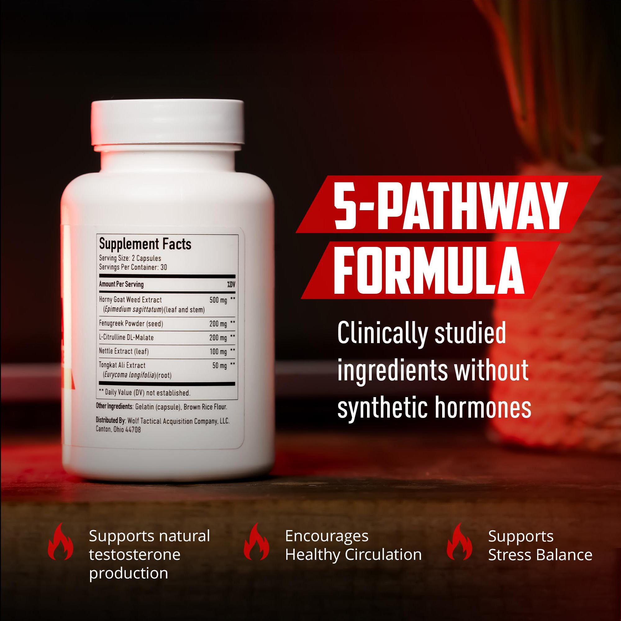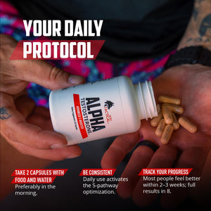 Alpha Testosterone uses a scientifically informed 5-pathway formula to support natural testosterone production, free testosterone availability, circulation, stress balance, and overall male vitality.