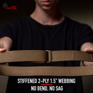 Wolf Tactical's 'Heavy Duty' EDC Belts are crafted with 2-ply rugged, rip-resistant nylon webbing, stiffened to support IWB and OWB holsters without rolling over. A safe and reliable foundation for CCW, our belts are rigid and sturdy enough for your holster, mags, and pouches whether you’re at the range or carry every day. NO BEND, NO SAG.
