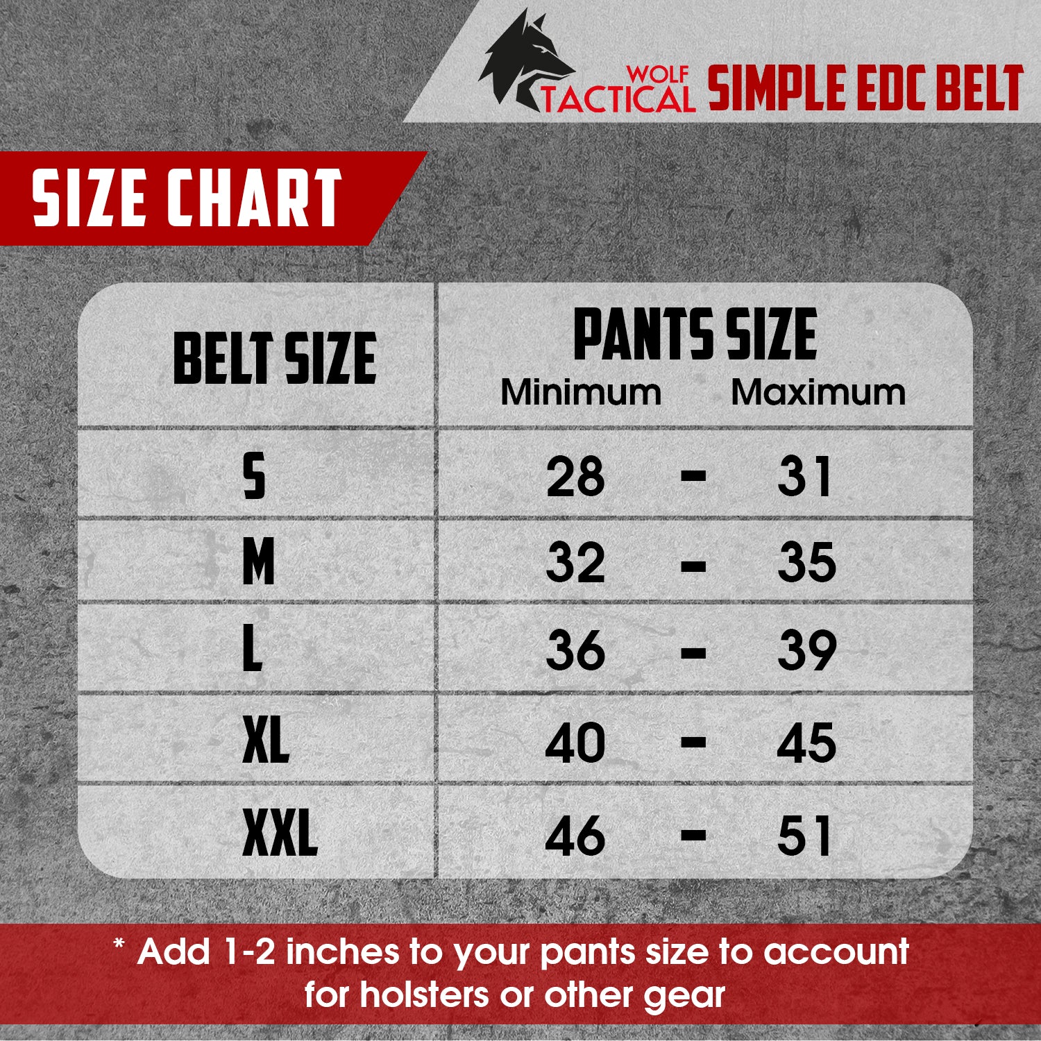 • Sizes for 28" to 51" waists