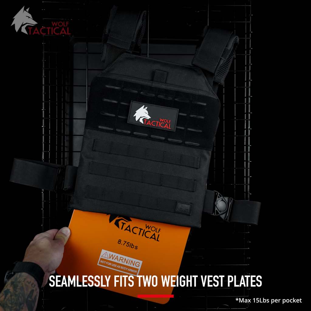 - Front and Back Plate Pockets (15lbs max per pocket)